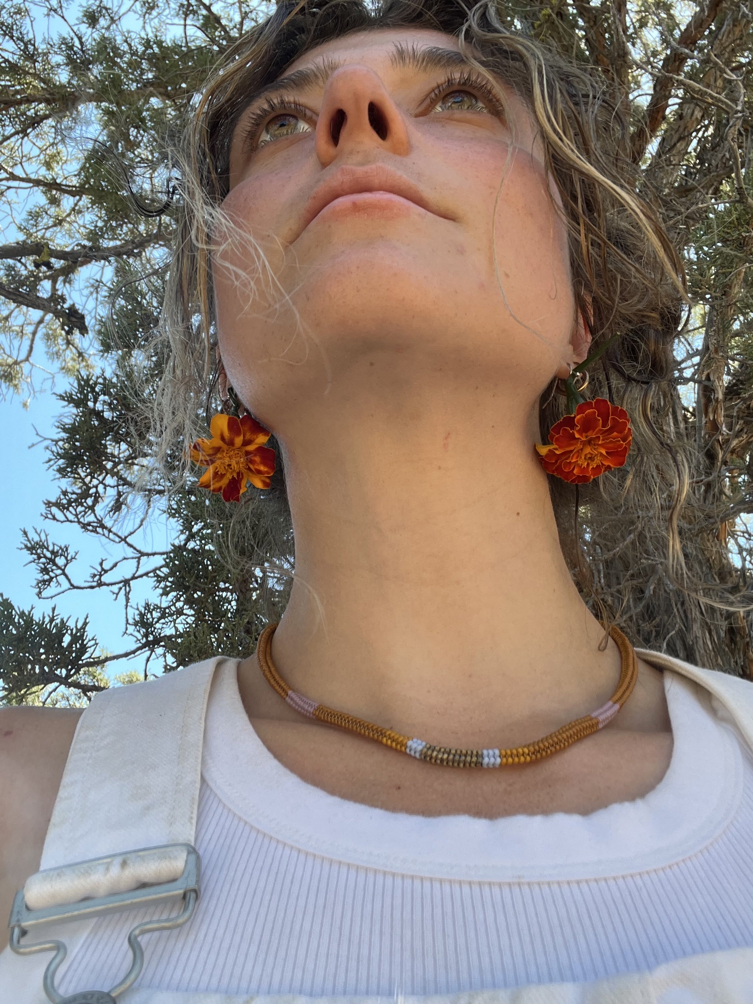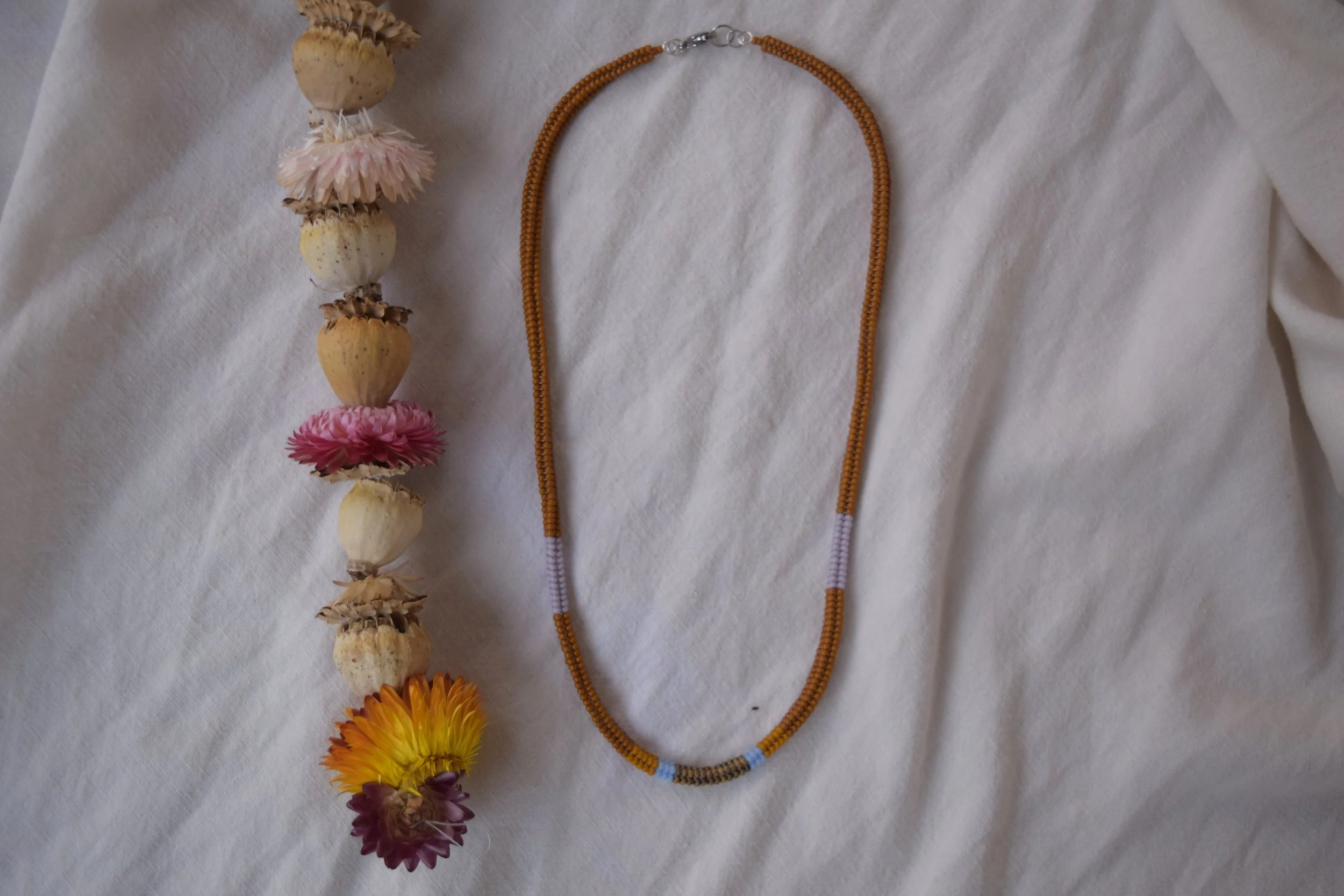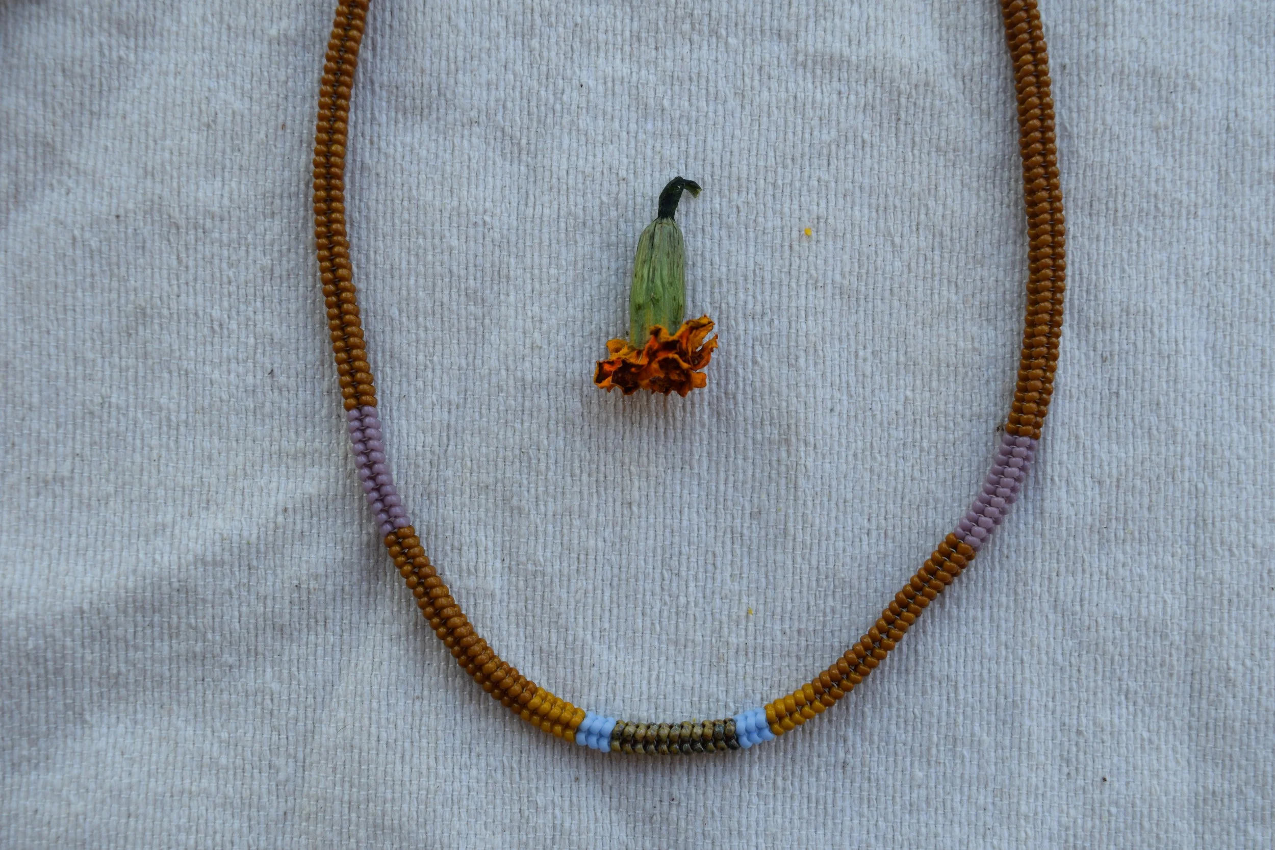 all pieces are sewn by hand with needle & thread, made with raw glass seed beads