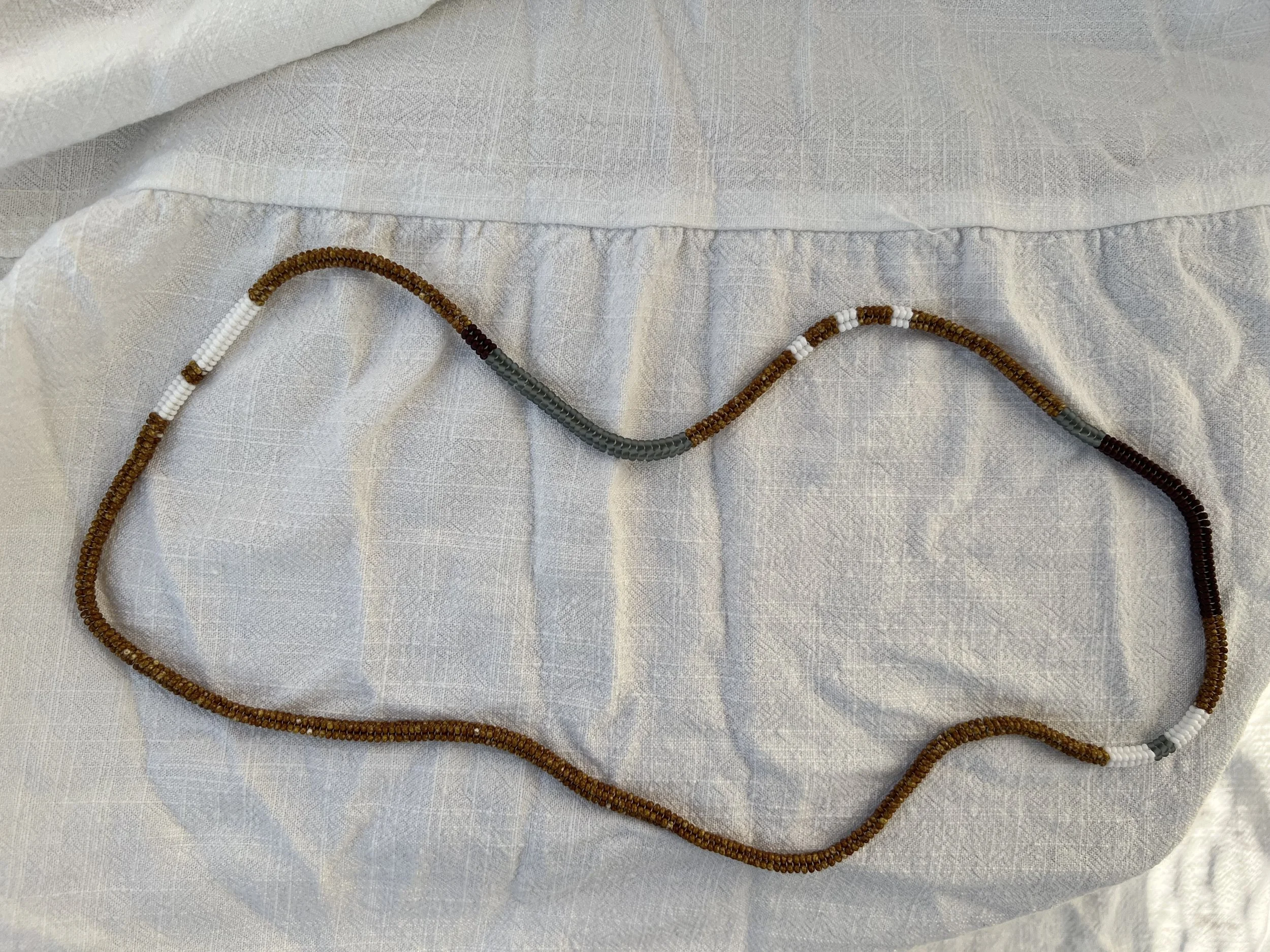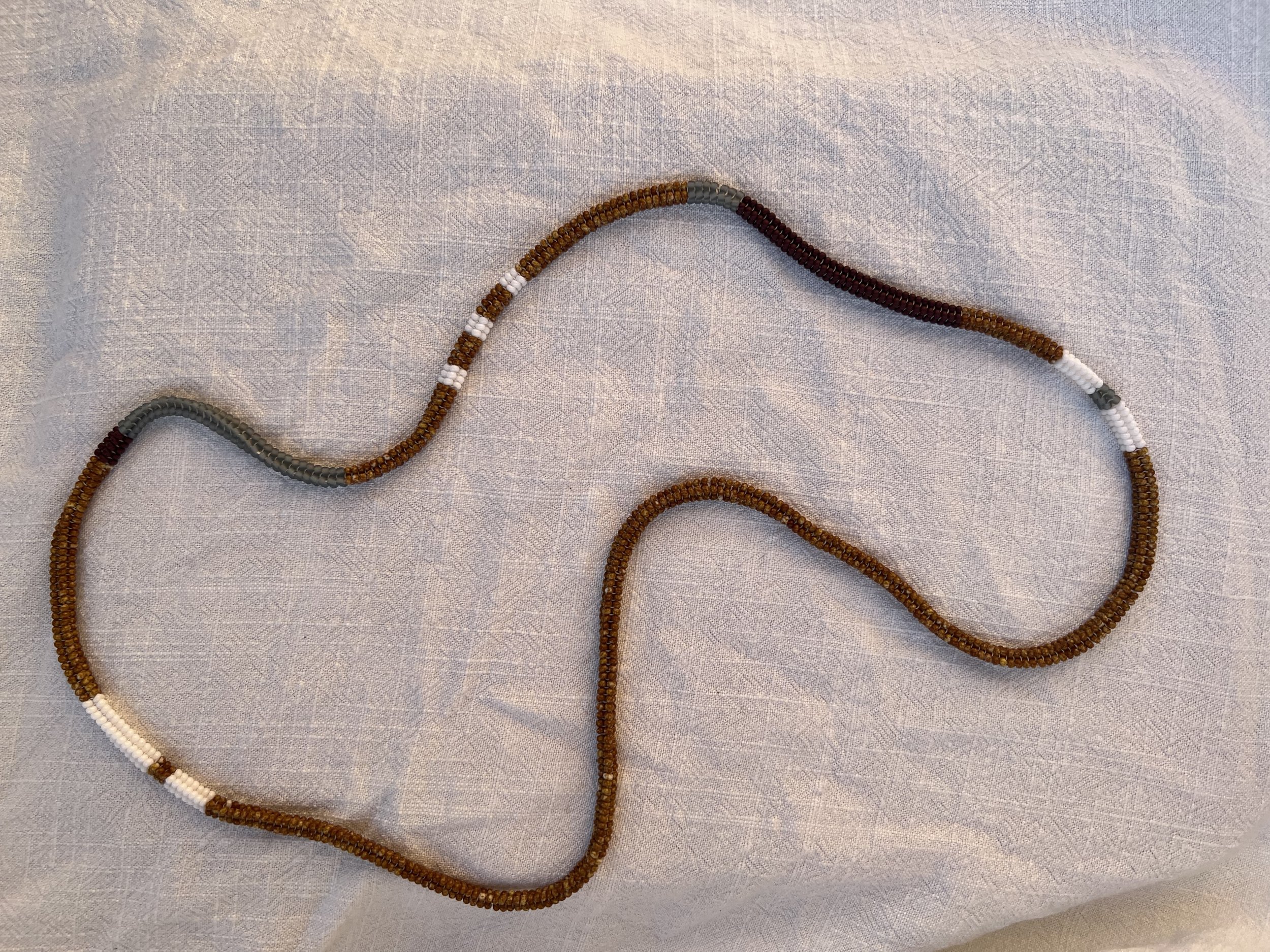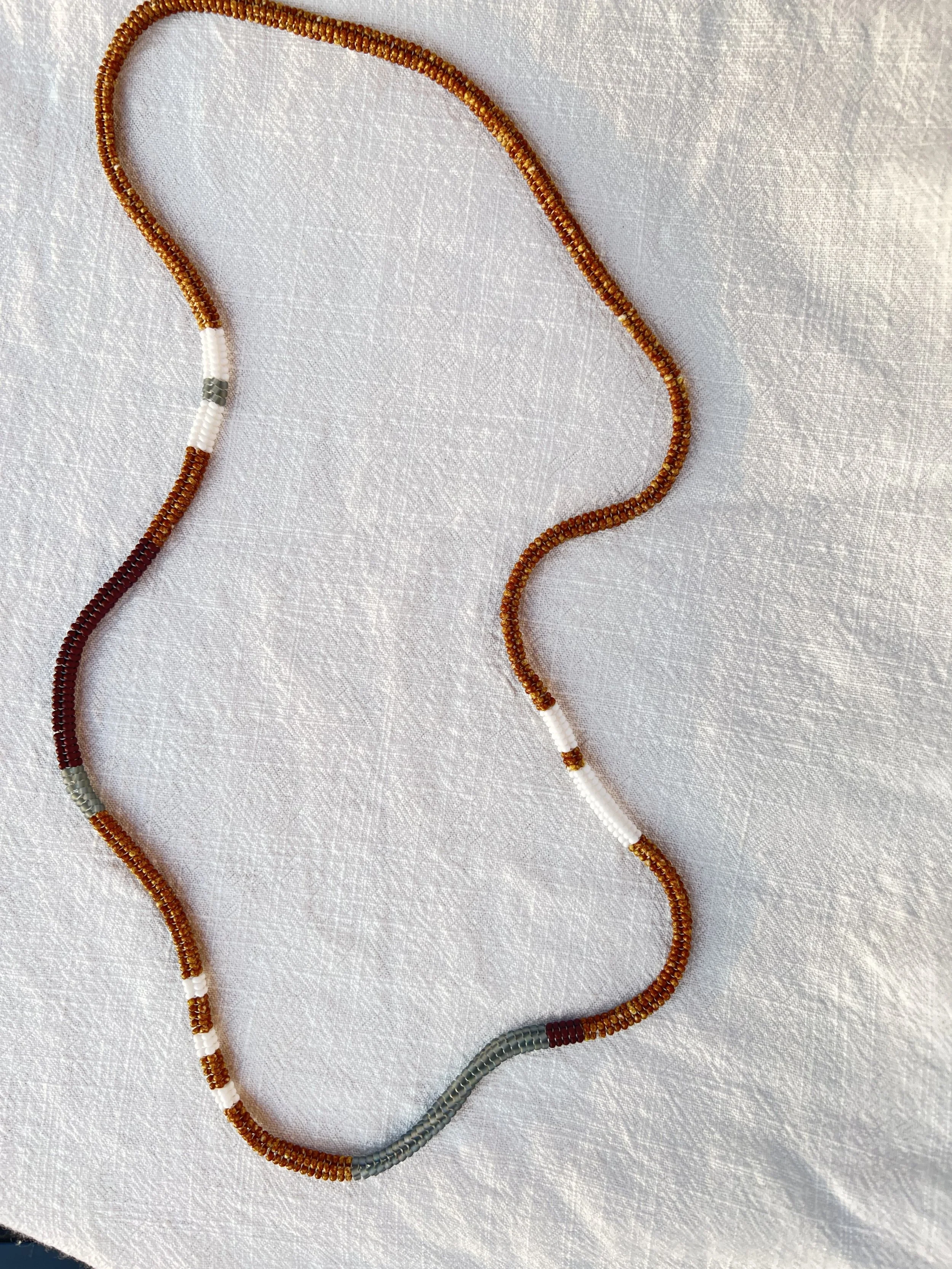 four sided endless woven necklace made with glass seed beads
