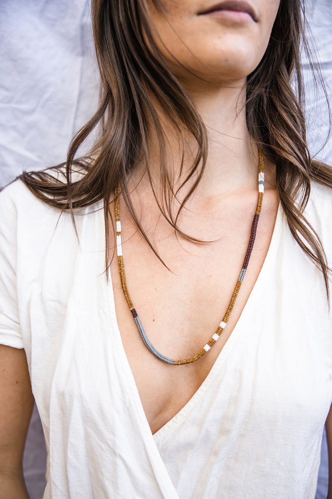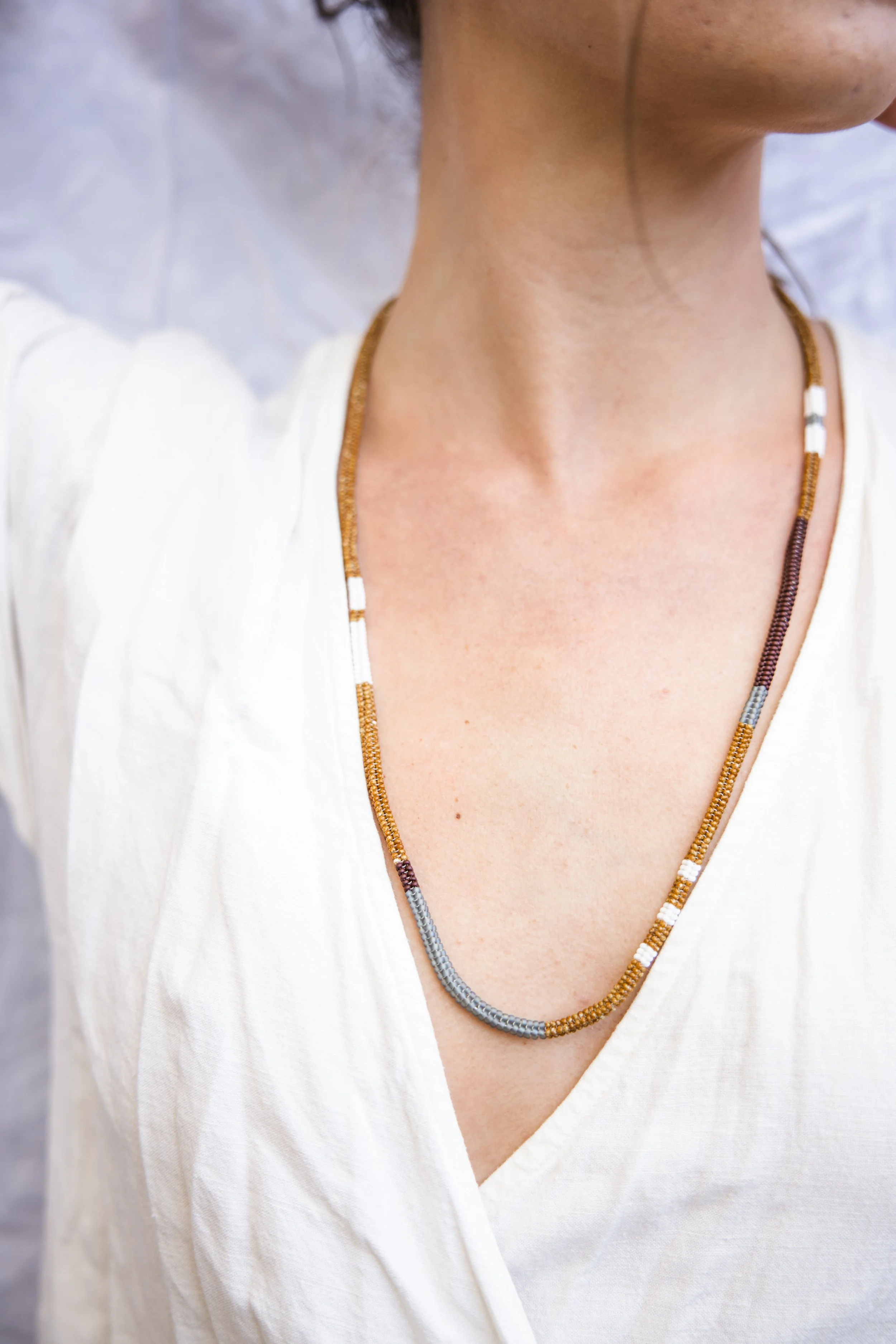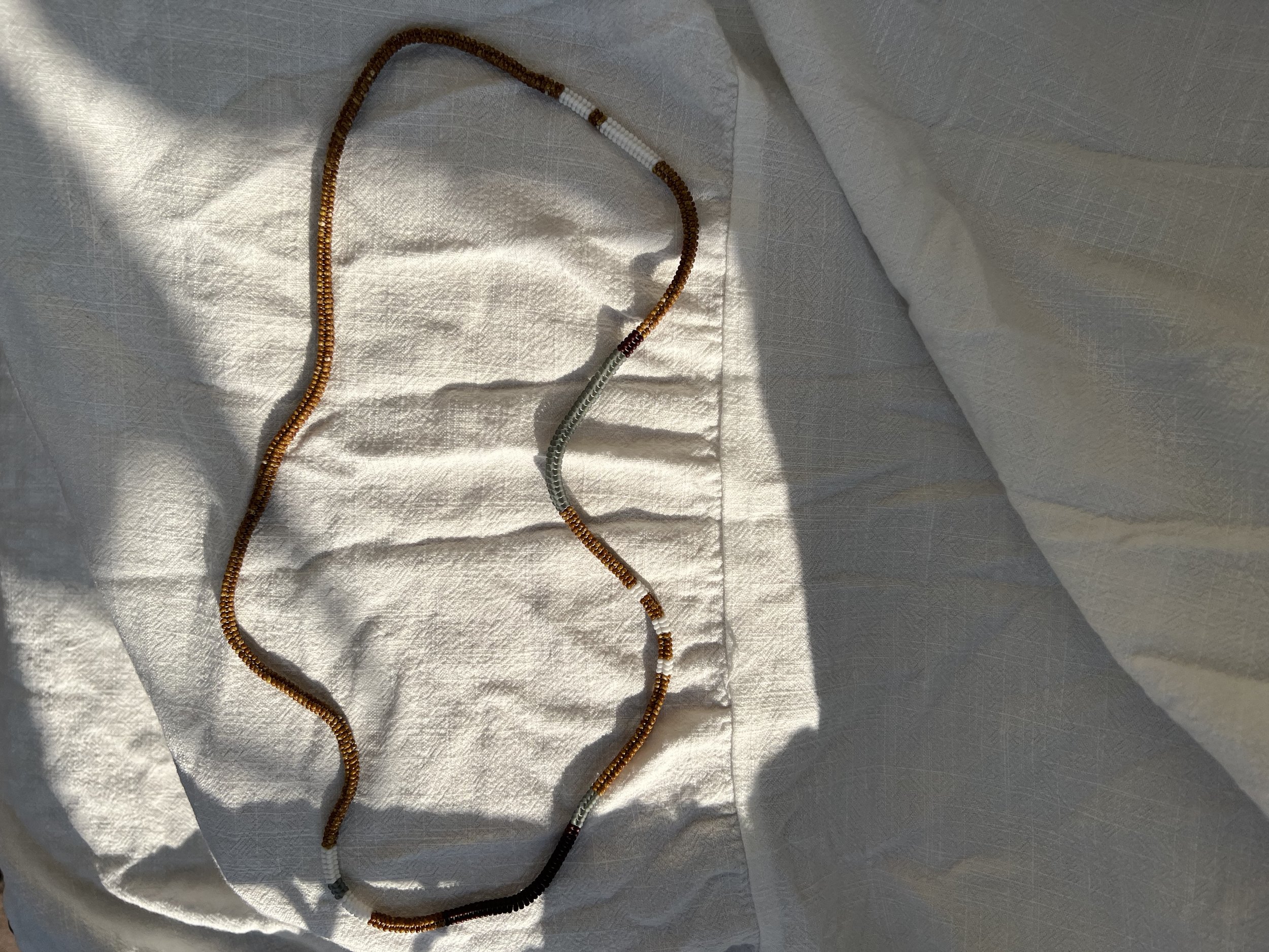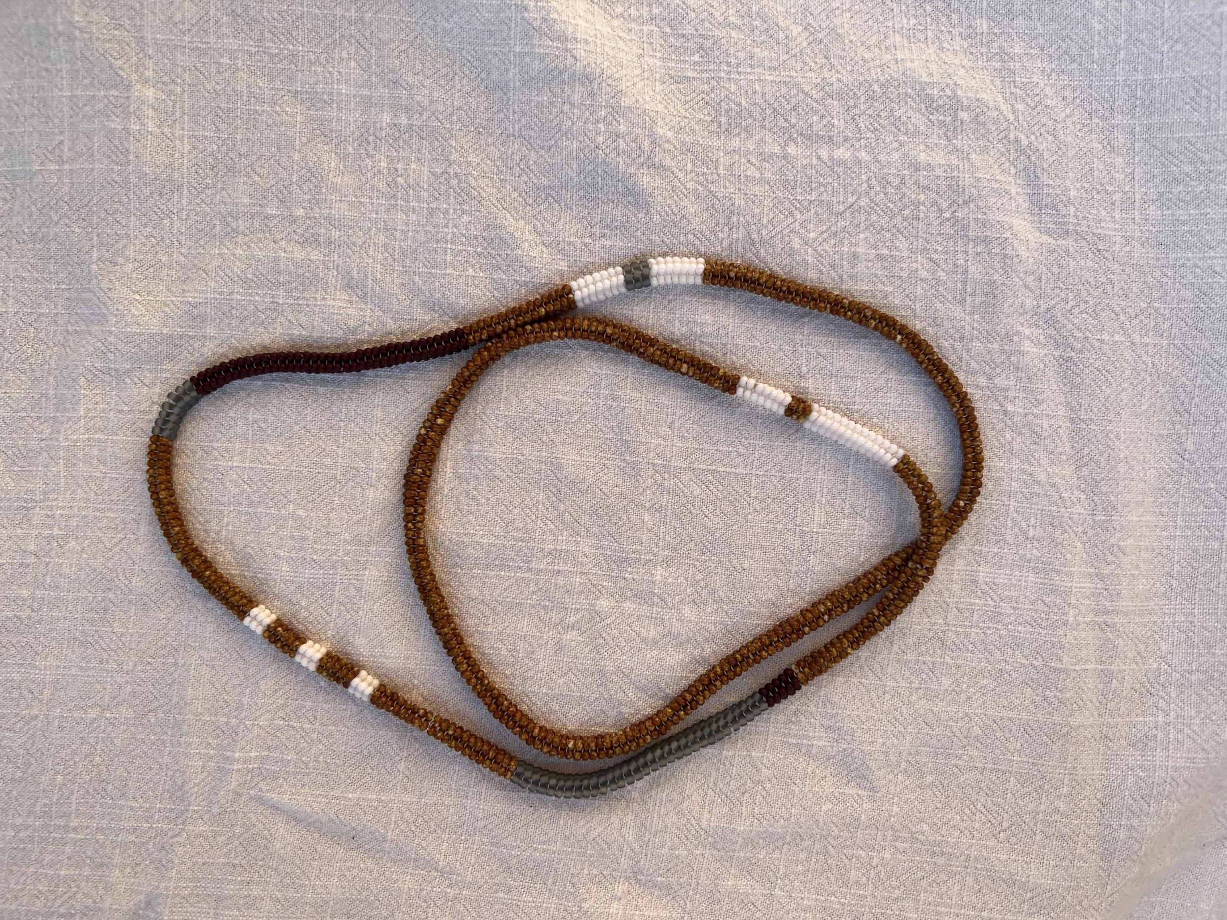 four sided endless woven necklace made with glass seed beads