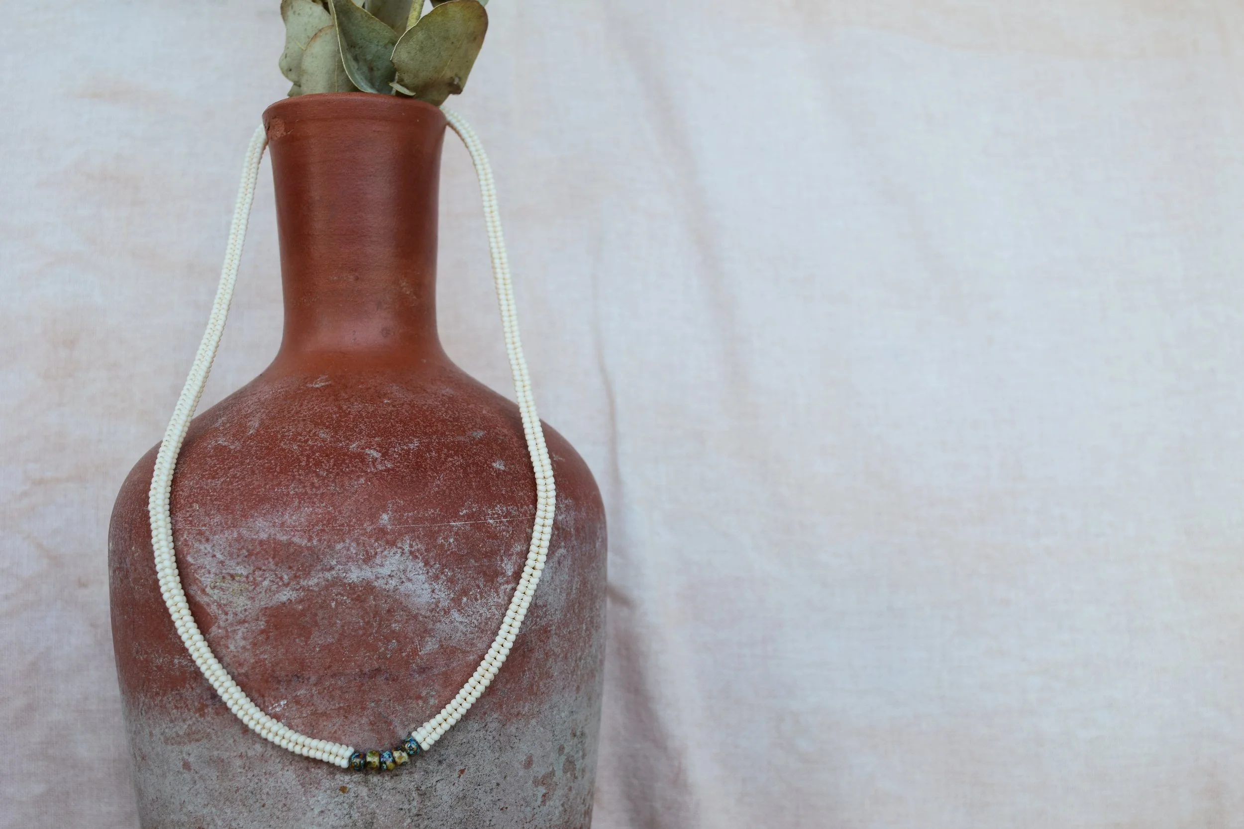 all pieces are sewn by hand with needle & thread, made with raw glass seed beads