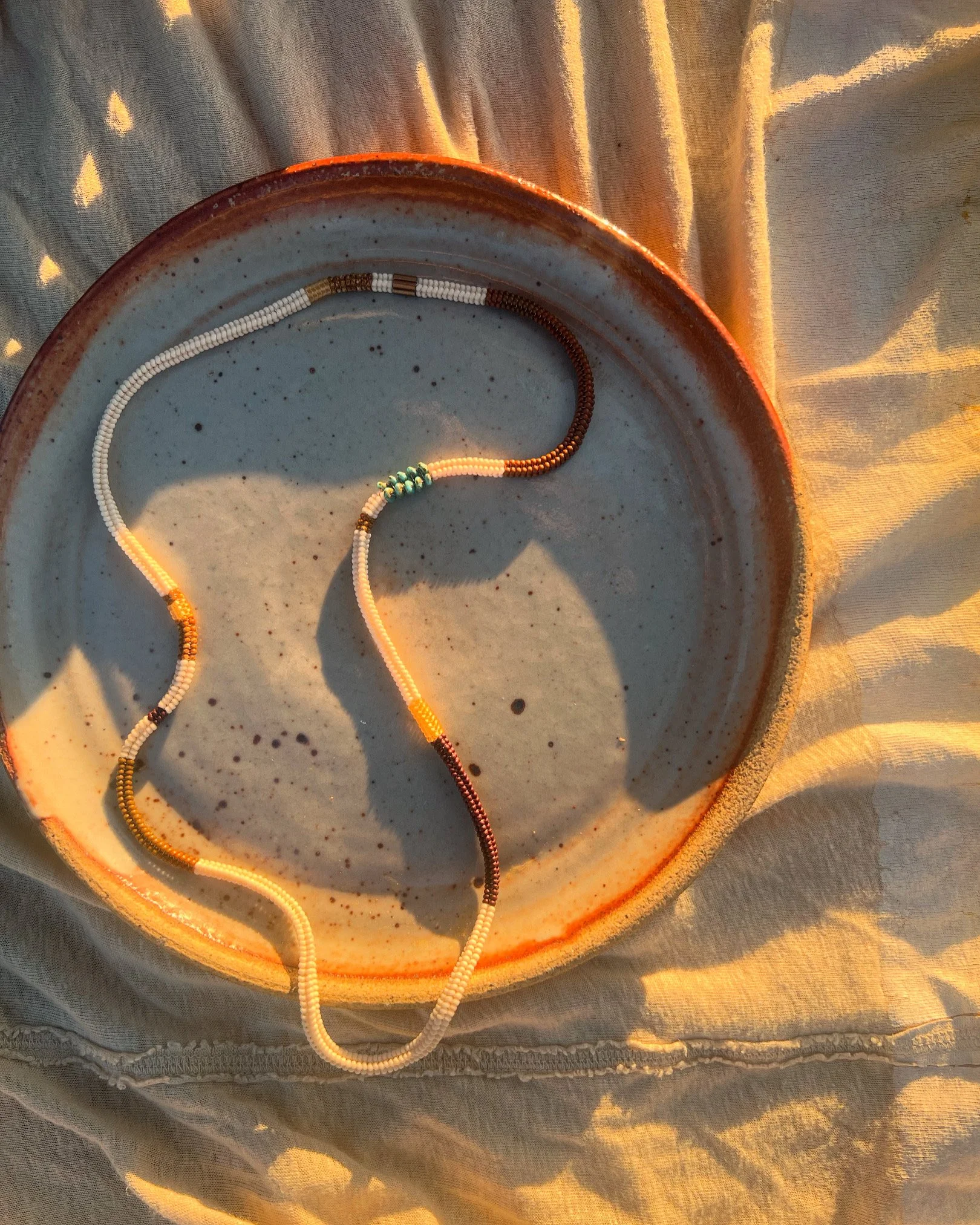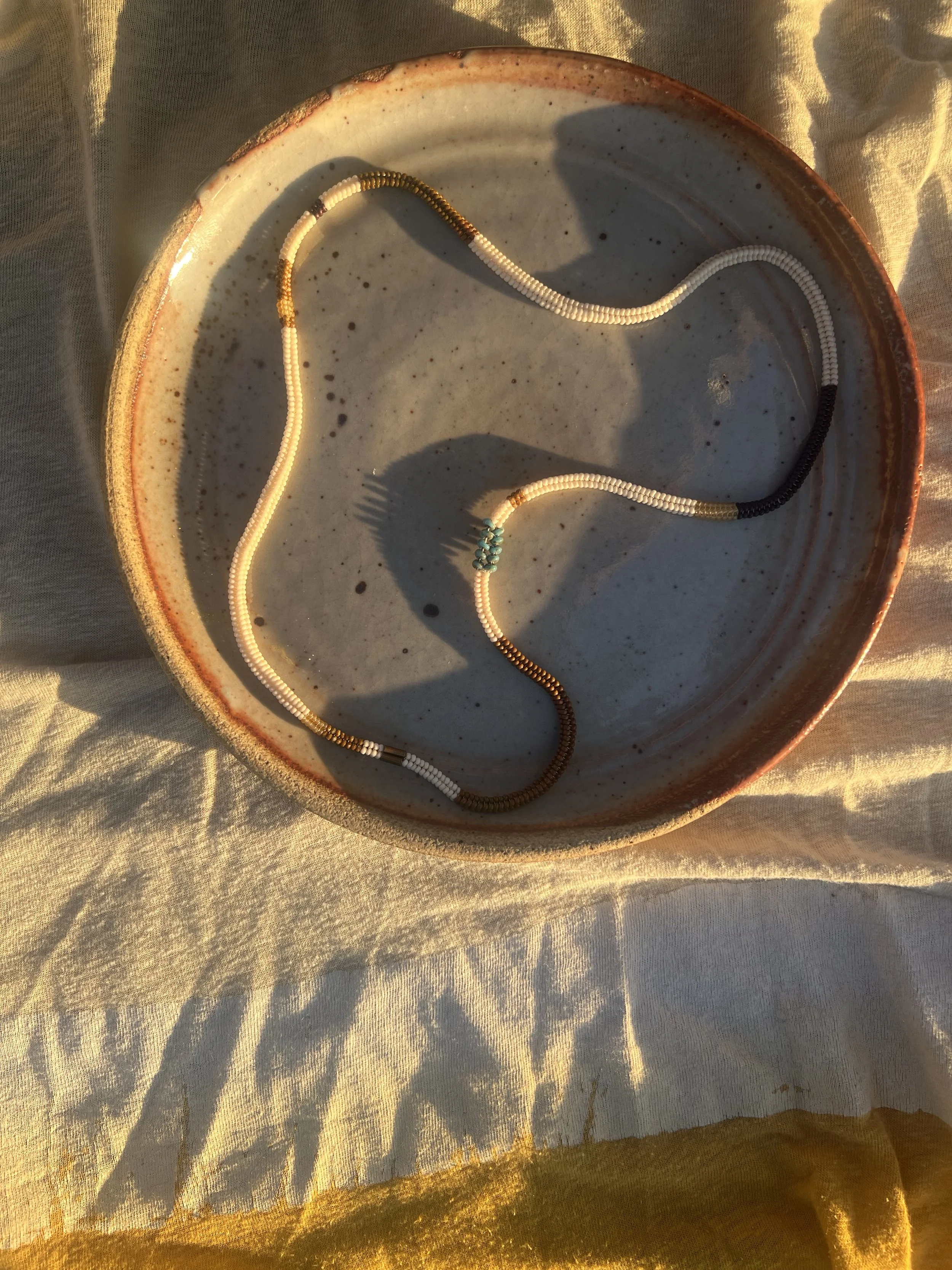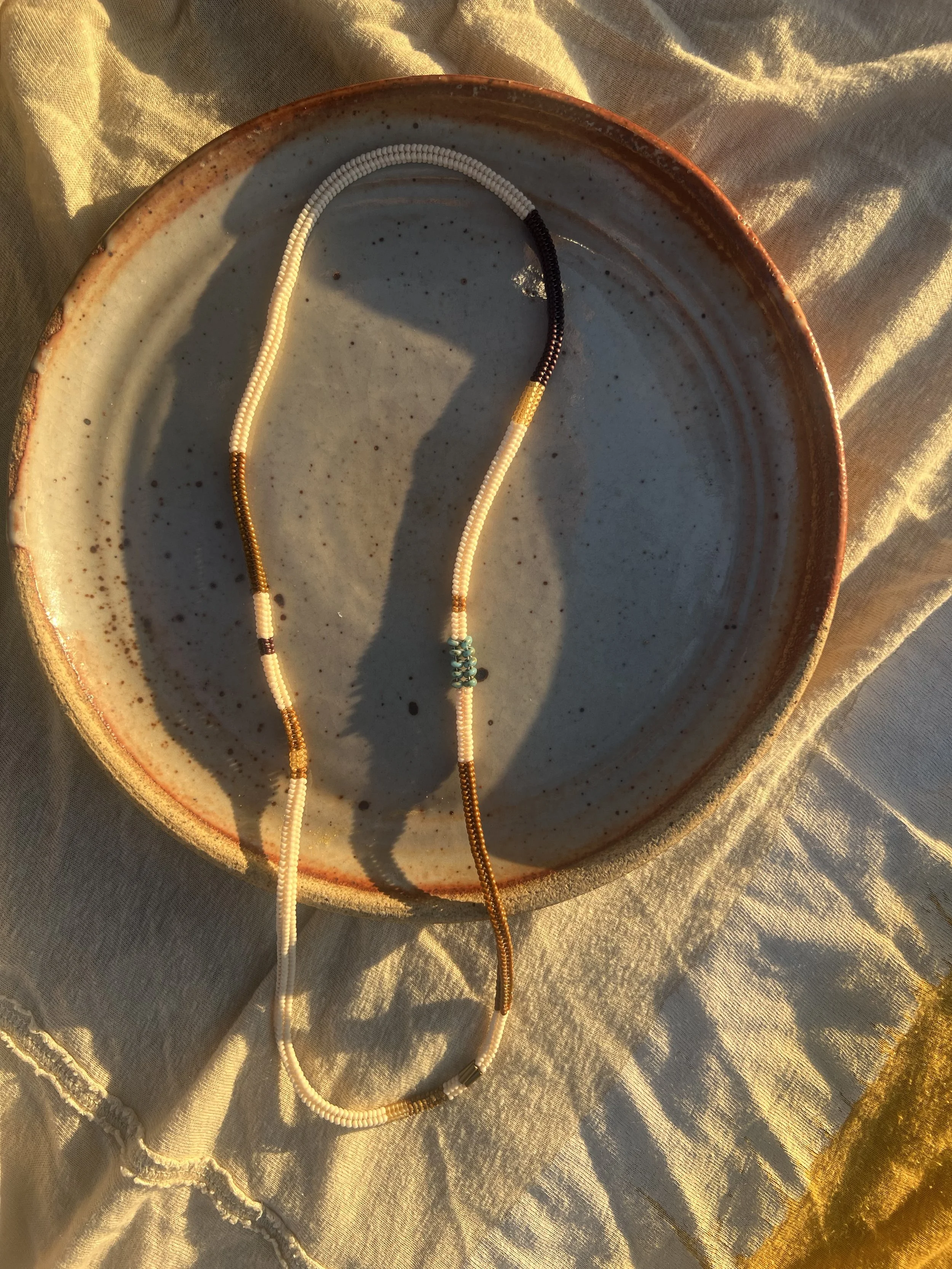 four sided endless woven necklace made with glass seed beads