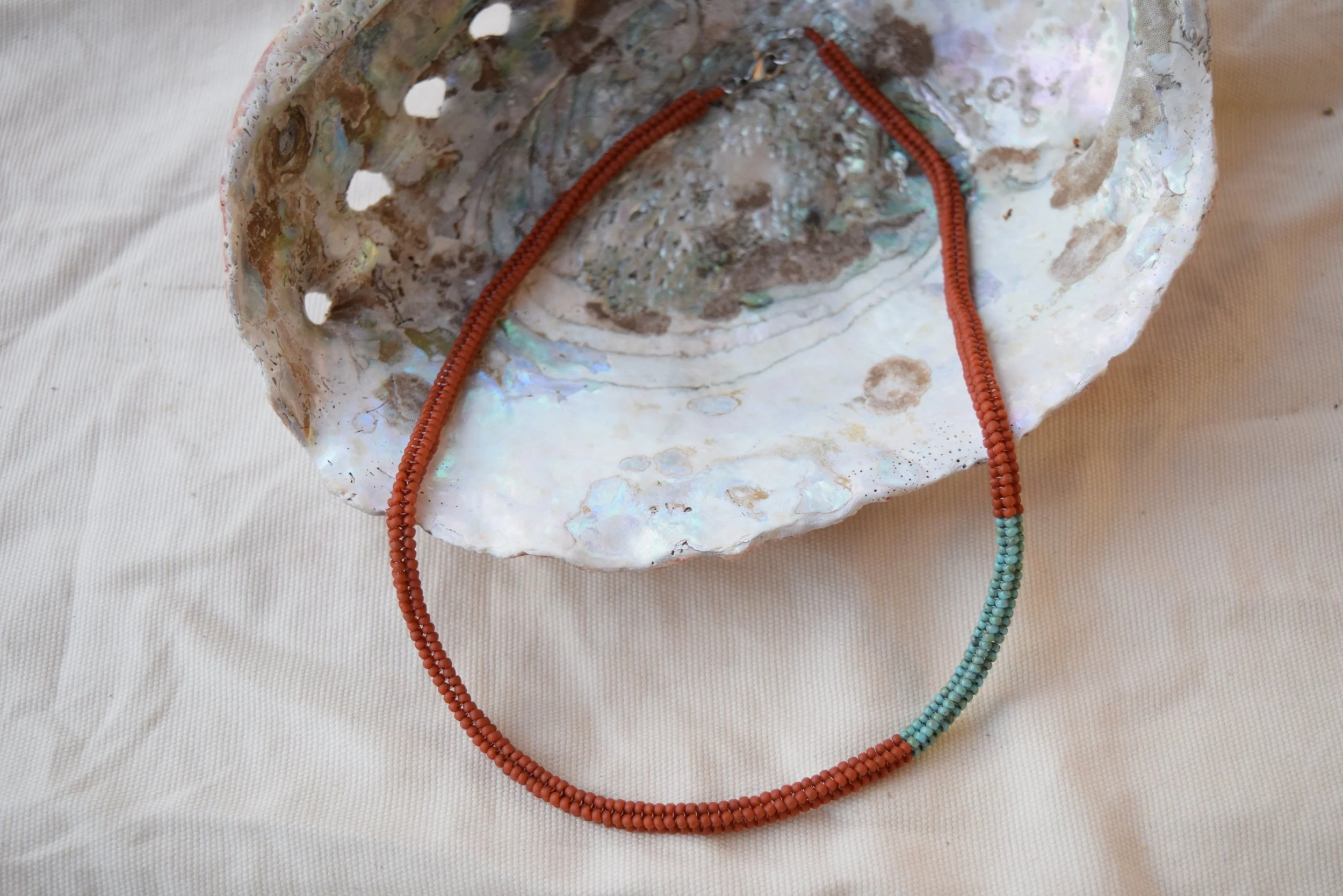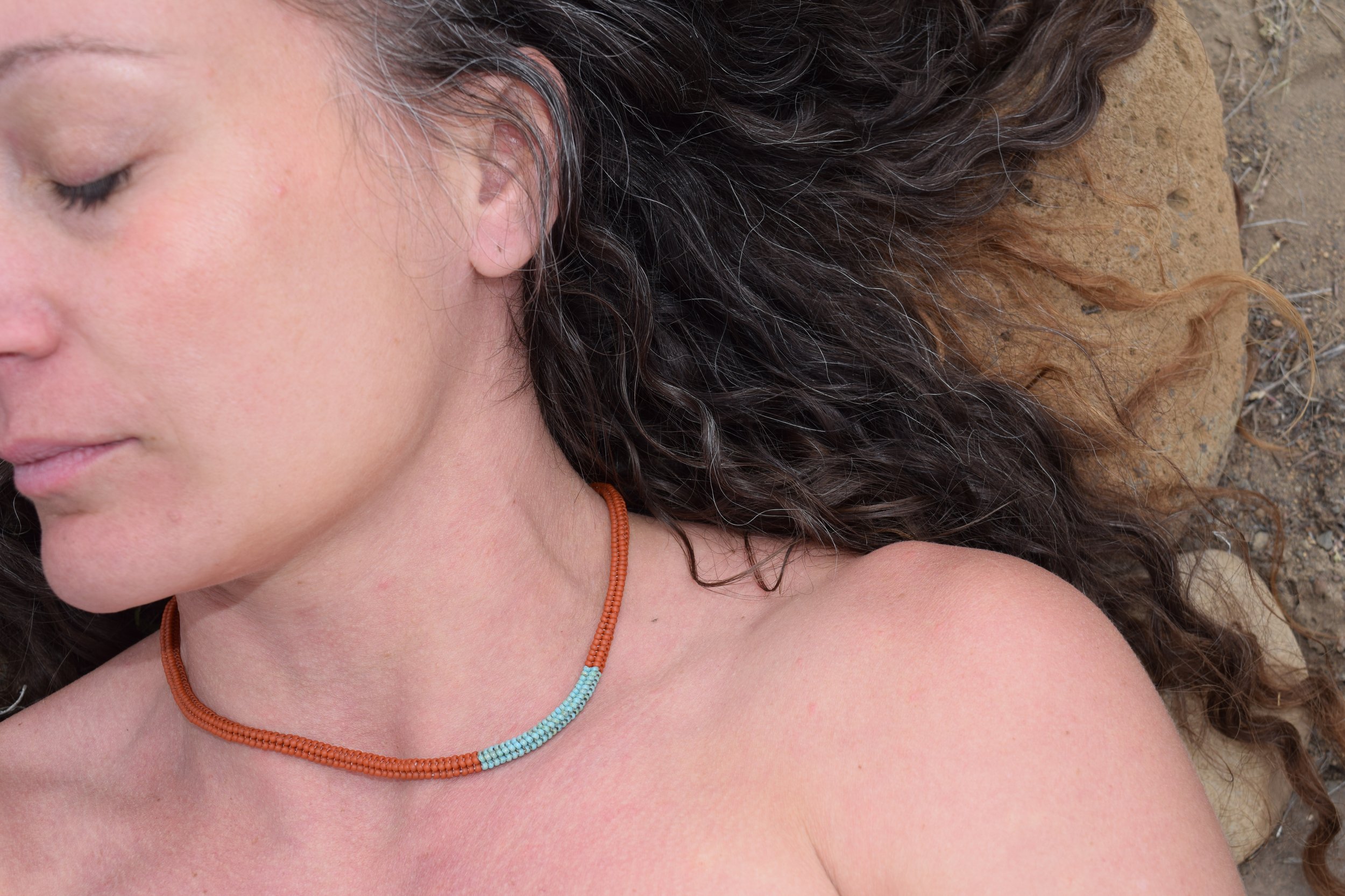 all pieces are sewn by hand with needle & thread, made with raw glass seed beads
