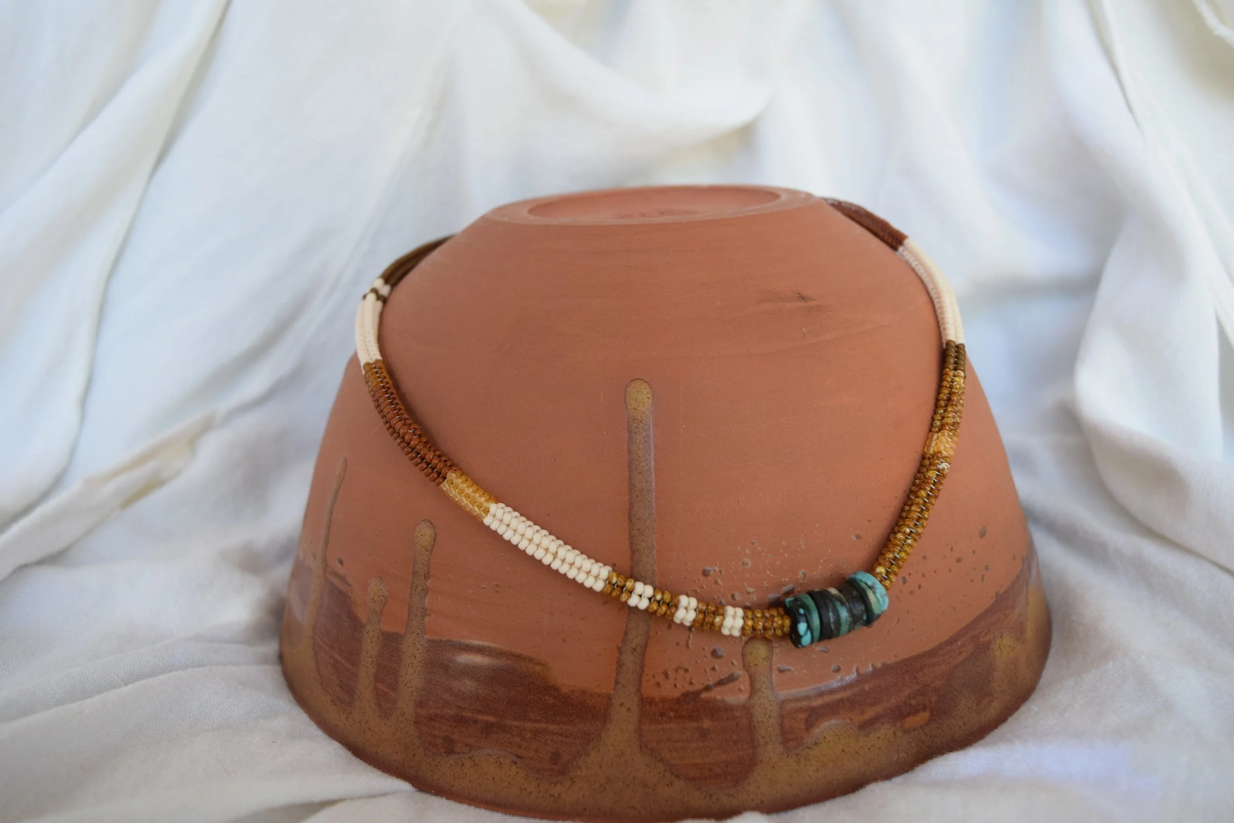 all pieces are sewn by hand with needle & thread, made with raw glass seed beads